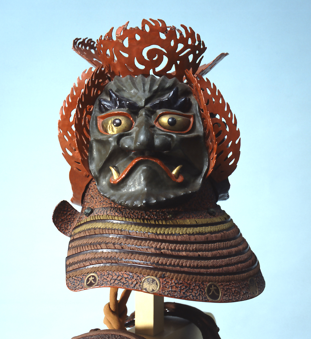 朱皺漆六枚胴具足 三宝荒神形兜付(伝上杉謙信所用)