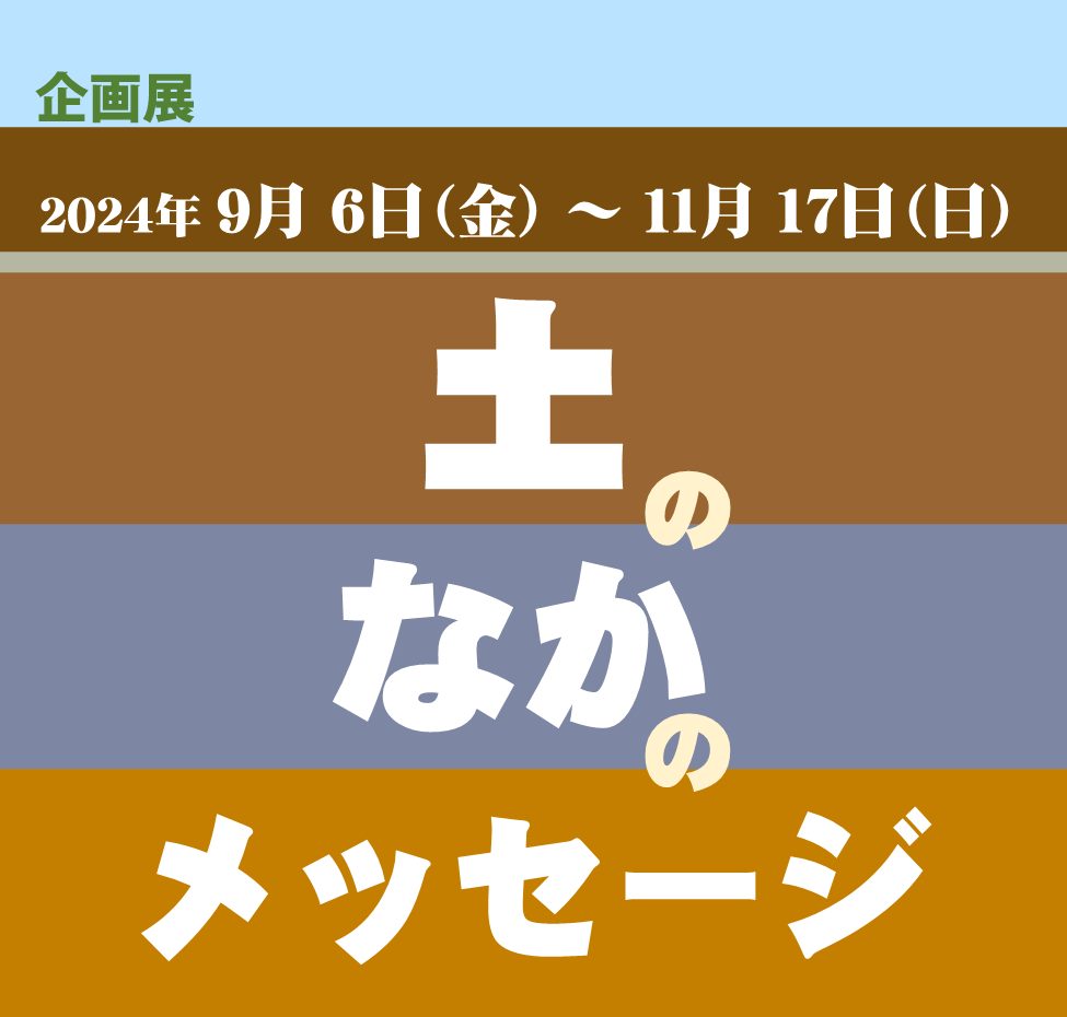 企画展「土のなかのメッセージ」 宮城県内の遺跡を発掘した時の地層から読み解く人々の暮らしや自然災害 などを紹介しました。 |