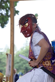 複雑な演舞の技法が正確に伝えられており、装束、唯子、踊歌、舞振等の様式や慣行は、修験道の古い信仰の形を残しています。 |