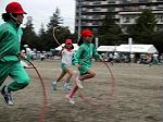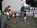 | ここから、番外編です。この日は、地元テレビ局の人が取材に訪れました。カメラを向けられれば、本来なら緊張するところですが、みんな競技に夢中で気づいてないみたい。 | 春の運動会との大きな違いの一つはこれ。出番でないとき、出店でお菓子の買い物ができます。子供たちにとってはなにより楽しいひととき。すごく安い! | 飼育舎の中をのぞき込む小さなお子さんが多かったので、中にいた5匹のウサギを柵の中にはなして解放しました。あまりの大人気で、ウサギにとっては過酷な一日だったかもしれません。 |