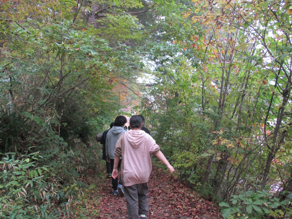 スポーツタイムで,地域内にある「恐竜山(金剛沢緑地)」に行きました。ひろばを出る時は,少し肌寒く感じましたが,みんなで歩いていると身体も温まってきました。木々の中で身体を動かすと,気分も上がります。上り坂・下り坂があって「疲れた〜。」「足が痛い。」と少々弱音(?!)をこぼした通級生もいましたが,無事ひろばに戻ると,「楽しかったです。」と振り返っていました。みんなお疲れ様でした!!