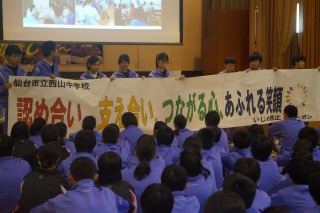 | 平成30年12月6日(木)に情報・産業プラザAERで、仙台市内の小・中学校の代表生徒が参加し、「いじめを生まない人との関わりを考えよう」をテーマに実施されました。 |