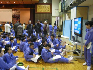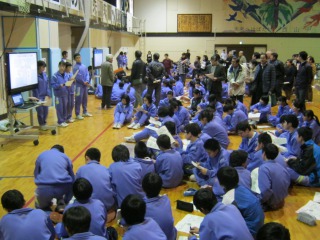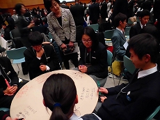 | オーエンス泉岳自然ふれあい館で仙台市内の中学生の代表者が集まり,実施されました。本校からも1・2年生の代表生徒2名が参加し,いじめ防止に向けて,自分たちができることなどについて話し合いをしてきました。 |