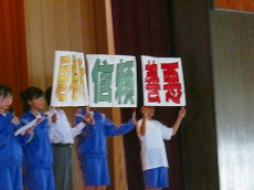 | 生徒会主催による全校集会です。各学年のいじめ防止キーワードの発表や、現在の課題について考えを深める集会を実施しています。 |