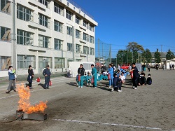 11月22日(水)に引渡訓練・避難訓練が行われました。今年の避難訓練は,若林消防署六郷分署の皆様のご協力のもと全校避難を行いました。避難後には,消防署の方からの講話や消火器訓練,濃煙体験を行いました。また,例年実施している引渡訓練では,迎えに来た保護者の方に,遺漏なく生徒のみなさんを引き渡すことができました。「いざ」という時に備えてしっかりと訓練を行うことができました。