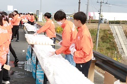 11月5日(日),東北・みやぎ復興マラソンに生徒11名と教員1名がボランティアとして参加しました。生徒たちは全員,自ら希望しての参加でした。当日は決して恵まれた天候ではありませんでしたが,ランナーが飲むドリンクを用意し,ゴミなどを拾う作業を全員が一生懸命に行いました。ランナーからの「ありがとう!」という声がけに笑顔で応える場面も見られました。