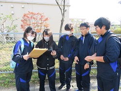 11月15日(水)に,1年生の「まちあるき」が行われました。「まちあるき」とは防災学習の一環で,自分たちが住む地域を実際に歩きながら,災害時の危険個所を調査し「防災マップ」を作成することを目的に毎年1年生で実施しています。この日はいくつかのグループに分かれて地域をめぐり,様々な災害を想定しながら学習を進めることができました。また,地域の方々から震災時のお話を聞く貴重な機会を設けることができました。