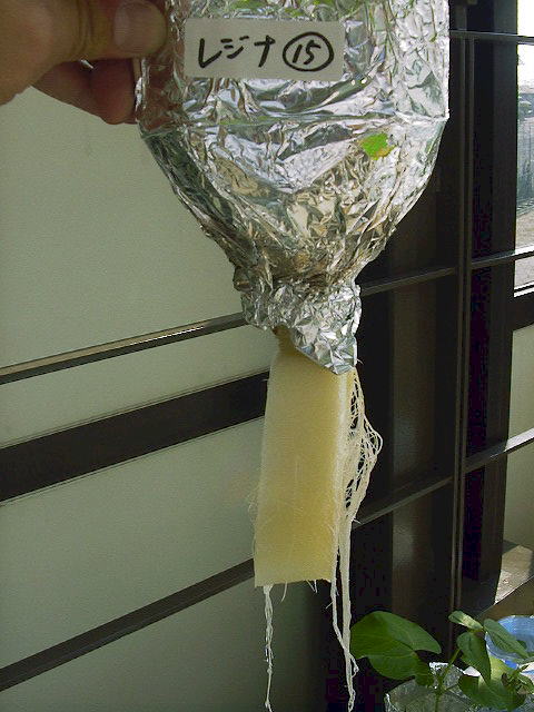 ペットボトルの下の部分には,培養液を入れます。培養液とは,
