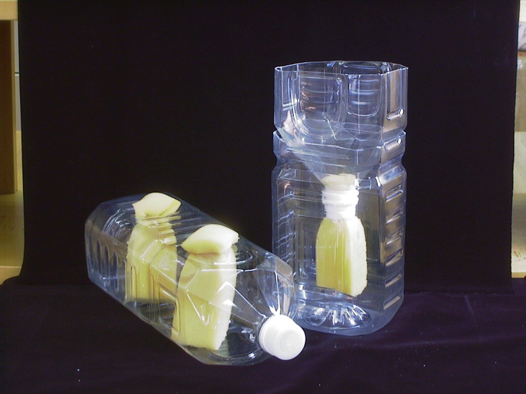 縦にして使用する場合には,右の写真のように,ペットボトルを2つに切断し,上部を逆さにして下部に差し込みます。 栓は使用しません。