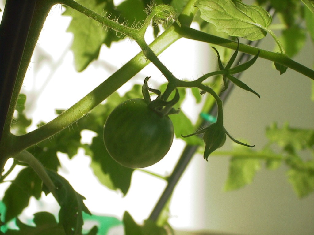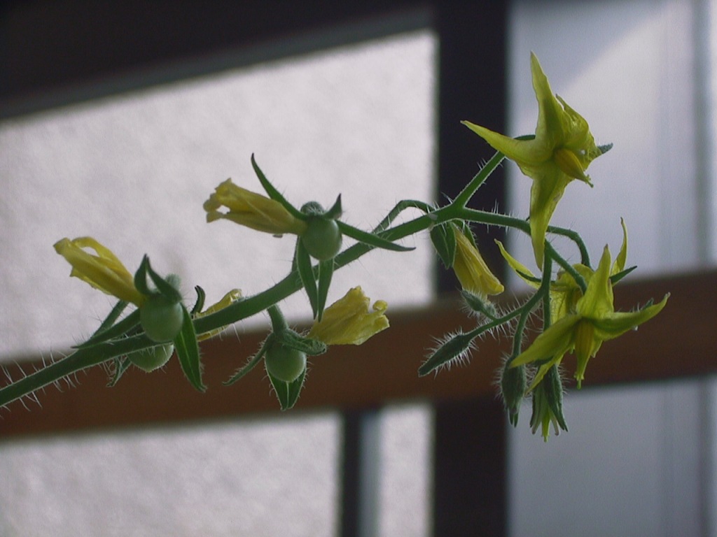 ・第2花房(下から二番目の花房)がでてきたら,頂芽摘芯し,第1花房のすぐ下のわき芽をのばします。