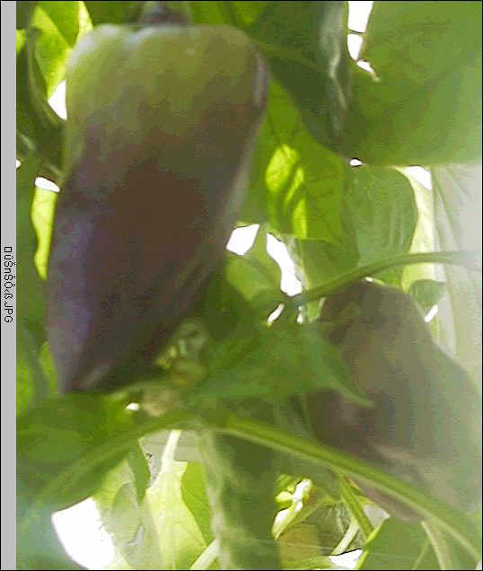 ・緑色の他,赤色,黄色などの品種もありますが,本種はカラーピーマンと呼ばれるものの一種で,色は緑から紫色に変化します。