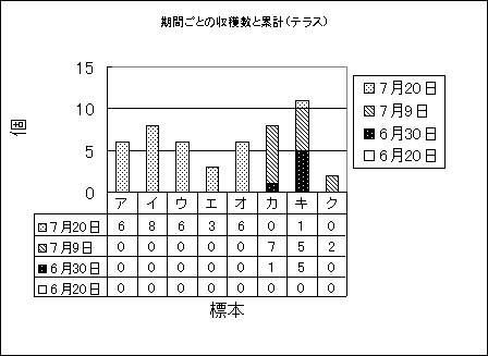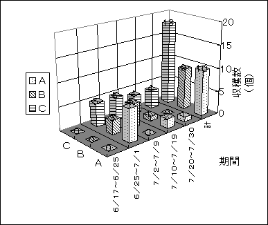 A,B,Cの3カ所で実験栽培を行いましたが,グラフは春蒔きにおいて各栽培場所で比較的良好に生育した標本の結実状況です。