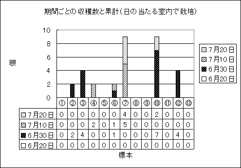 | 日当たりの少ない窓際(栽培場所B) | 0.14 | 0.17 | 0.18 | 0.09 | 0.09 | 0.10 |